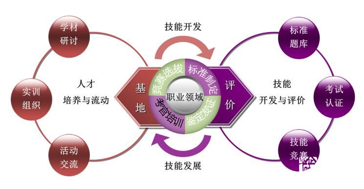 “標準制定、考官培訓、競賽選拔、鑒定發證”體系。