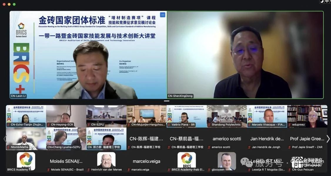 6月4日晚,由金磚技能與技術標準化工作委員會、廈門市金磚技術與技能標準化技術委員會(簡稱“金標委”)、一帶一路暨金磚國家技能發展國際聯盟主辦,北京企學研教育科技研究院、廈門市金磚未來技能發展與技術創新研究院承辦的金磚國家團體標準“增材制造賽項”課程、技能和競賽征求意見稿討論會暨一帶一路暨金磚國家技能發展與技術創新大講堂順利召開。本次會議以線上、線下相結合的方式,吸引了中國、巴西、南非、印度尼西亞等國家的增材制造技術領域及相關領域的專家、學者、企業代表等近百人參會,其中與會的國際專家20余人。6月4日晚,由金磚技能與技術標準化工作委員會、廈門市金磚技術與技能標準化技術委員會(簡稱“金標委”)、一帶一路暨金磚國家技能發展國際聯盟主辦,北京企學研教育科技研究院、廈門市金磚未來技能發展與技術創新研究院承辦的金磚國家團體標準“增材制造賽項”課程、技能和競賽征求意見稿討論會暨一帶一路暨金磚國家技能發展與技術創新大講堂順利召開。本次會議以線上、線下相結合的方式,吸引了中國、巴西、南非、印度尼西亞等國家的增材制造技術領域及相關領域的專家、學者、企業代表等近百人參會,其中與會的國際專家20余人。