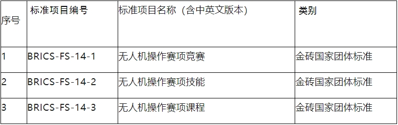 金磚國家團體標準“無人機操作賽項”相關標準起草工作組成員的通知