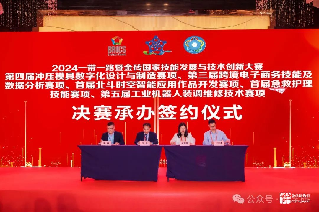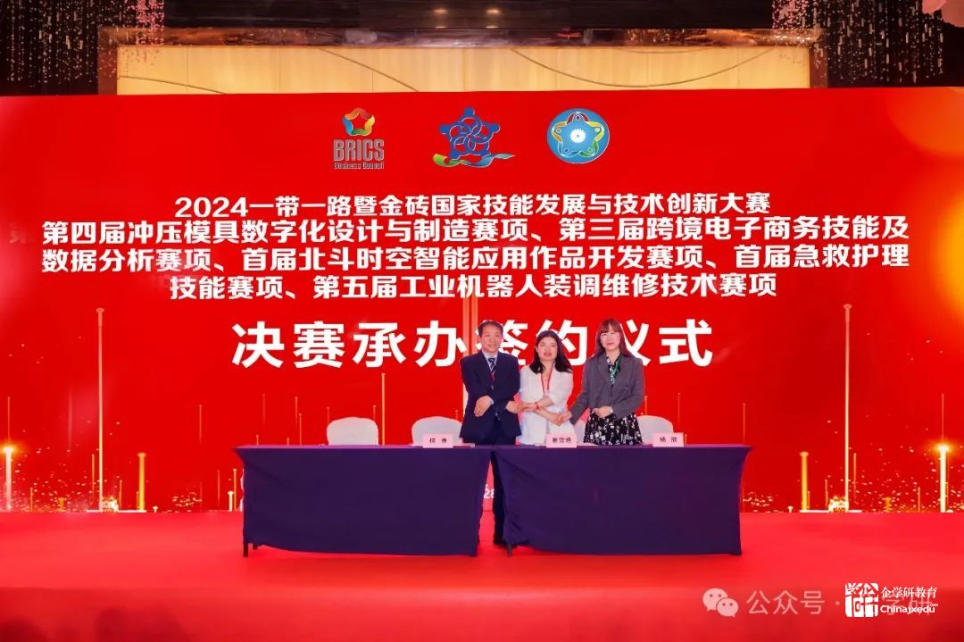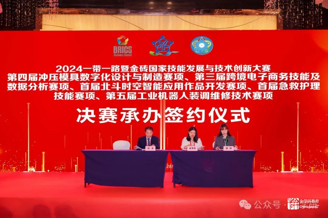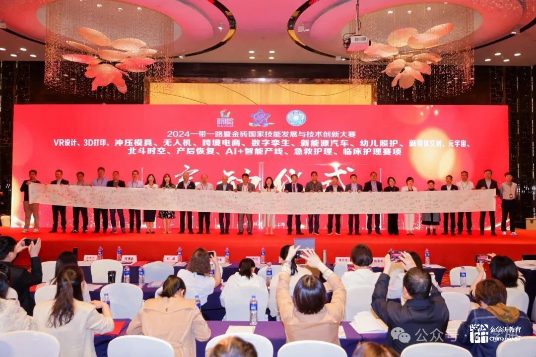 2024年4月27日,一帶一路暨金磚國家技能發展與技術創新大賽之VR設計、3D打印、沖壓模具、無人機飛行、跨境電子商務、工業產品數字孿生、新能源汽車創新制作、新媒體文創、元宇宙工業場景開發、北斗時空智能應用、產后恢復、AI+智能產線、急救護理、幼兒照護、臨床護理等15個賽項技術培訓暨啟動會在上海隆重舉辦。