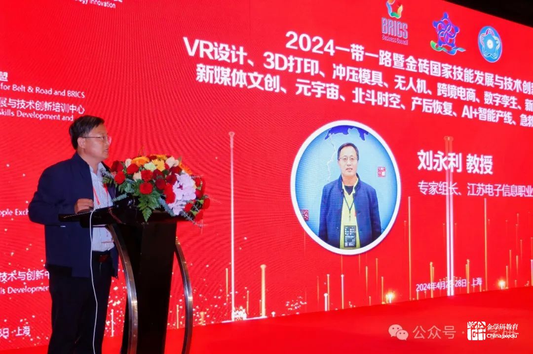 金磚國家技能發展與技術創新大賽組委會執委會副主席,北京企學研教育科技研究院執行院長何勇做《2017-2024金磚國家技能發展與技術創新成果設計與務實合作》主題報告