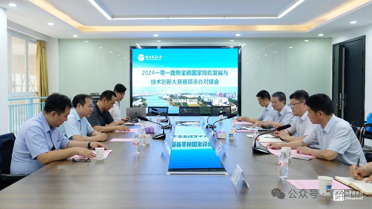 2024年6月20日,鄂州職業大學承辦一帶一路暨金磚大賽之第七屆虛擬現實(VR)產品設計與開發賽項決賽簽約儀式在鄂州舉行。 在金磚國家技能發展與技術創新大賽組委會執委會副主席何勇、湖北機械工程學會副秘書長揭英成、鄂州職業大學校長何保華等領導見證下,北京企學研教育科技研究院副院長李昂,鄂州職業大學副校長馬凌軍,杭州萬維鏡像科技有限公司總監于建共同簽署決賽承辦協議。