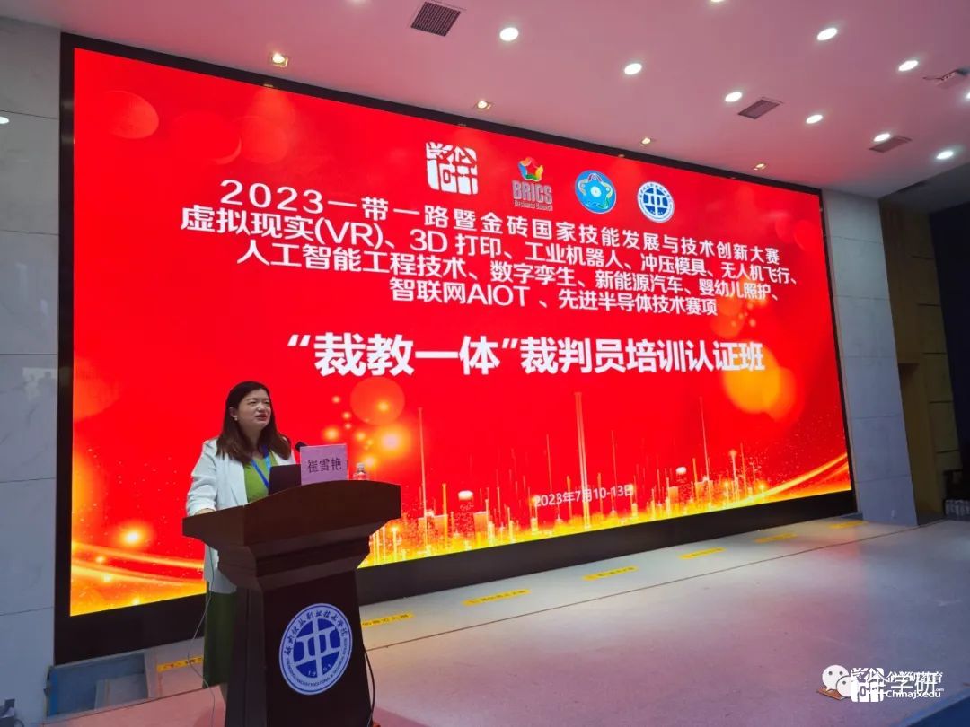 本次培訓(xùn)特別邀請了第44、45、46屆世界技能大賽原型制作項目中國技術(shù)專家兼教練組組長、廣州市技師學(xué)院 趙曉霞,2019喀山未來技能大賽金牌教練、韶關(guān)市技師學(xué)院 劉志宏,2022金磚國家職業(yè)技能大賽無人機賽項首席專家、武漢城市職業(yè)學(xué)院 何錫武做報告,分享“裁教一體”執(zhí)裁經(jīng)歷。