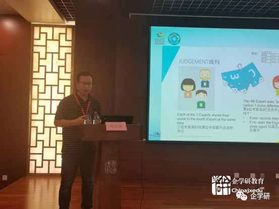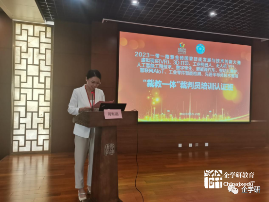金磚國(guó)家工商理事會(huì)中方技能發(fā)展工作組執(zhí)行總監(jiān)崔雪艷介紹《金磚國(guó)家技能發(fā)展成果設(shè)計(jì)與務(wù)實(shí)合作》主報(bào)告,分享2017-2023年中方技能組取得的各項(xiàng)成果,并贊許賽項(xiàng)對(duì)標(biāo)國(guó)際裁教一體執(zhí)裁方式。